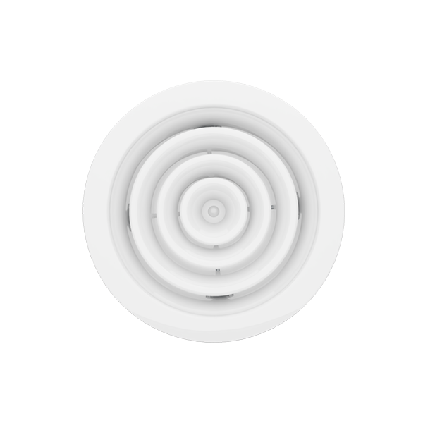 The circular ceiling diffuser provides balanced 360° air distribution, ensuring consistent comfort across large areas. Its aerodynamic design minimizes noise